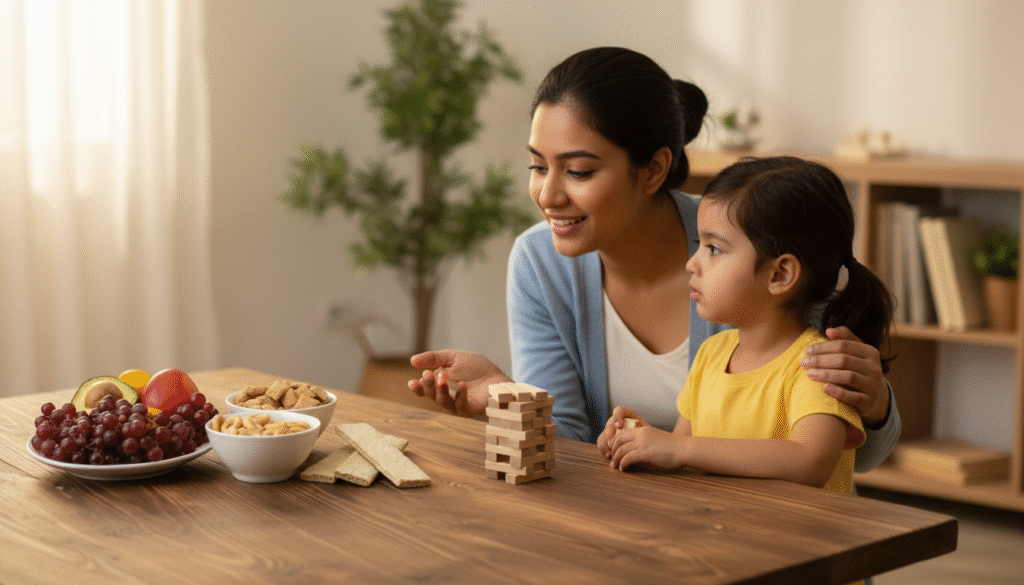 Start mornings with connection, not chaos. A hug, a “good morning” song, or sharing breakfast together can set a positive tone.