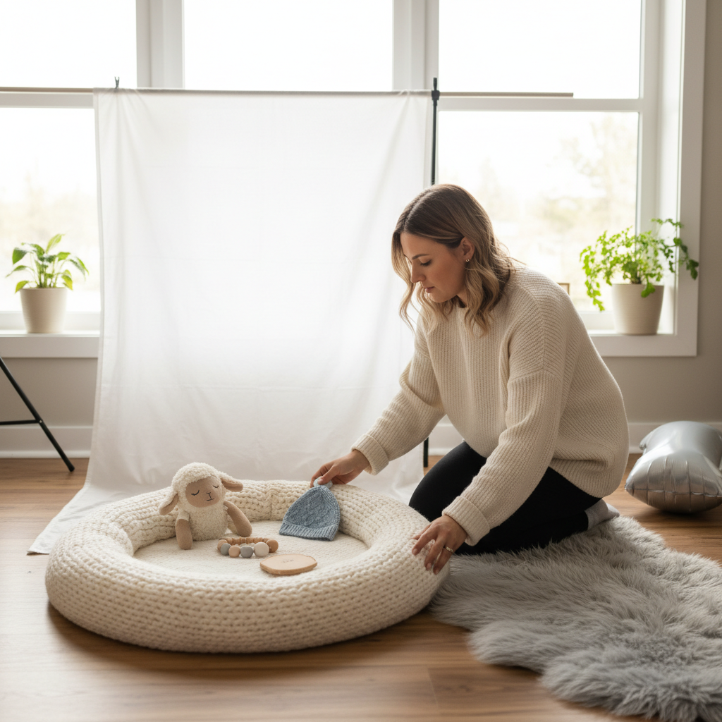 • Soft Blankets and Rugs: Great for backdrops and adding texture. Think neutral colors or soft patterns.