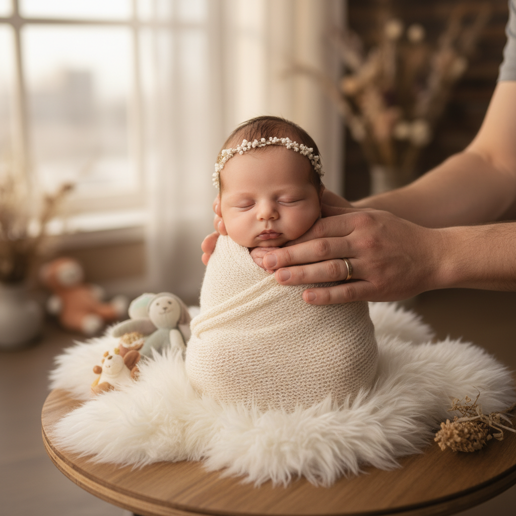 • Headbands or Hats: A tiny knitted hat or a delicate headband can add a sweet touch, but ensure your baby is comfortable.