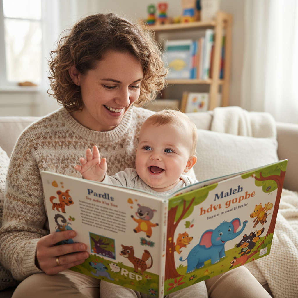 Capture a tender moment between you and your baby, or simply your baby engrossed in a board book. This showcases their growing engagement with stories and their sweet, focused expressions.