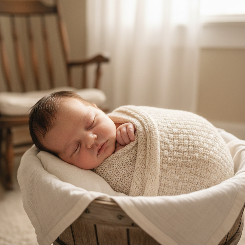 - Swaddled Sweetness Wrap your baby snugly in a soft blanket. Place them in a bassinet or on a clean, clear bed with natural light.