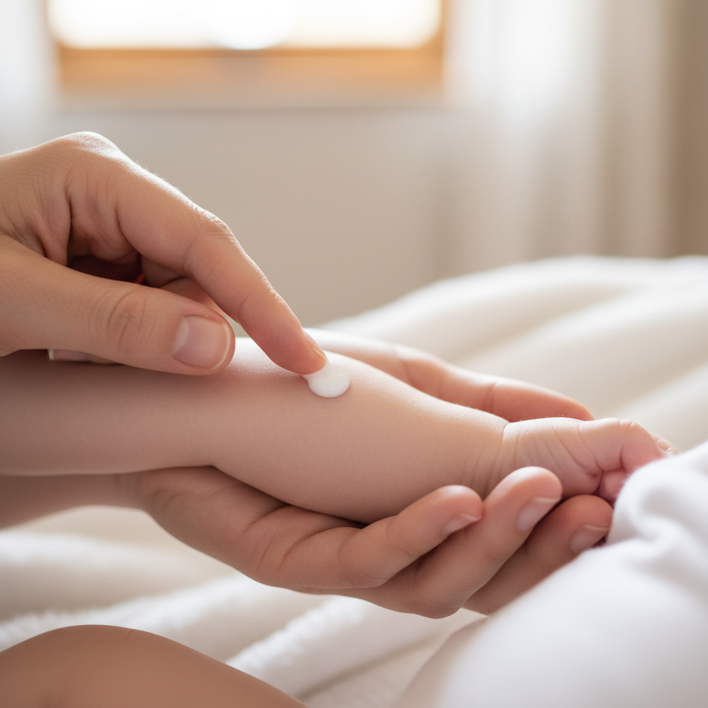 - Small Area Test Before using any new product extensively, apply a tiny amount to a small, inconspicuous area of your baby’s skin, like the inner arm or behind the ear.