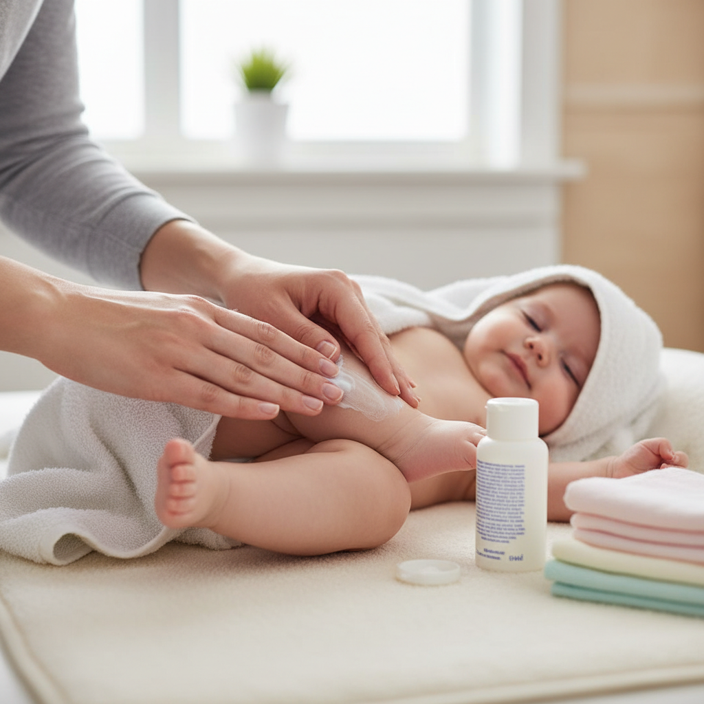 - How to Apply Use a generous amount of fragrance-free baby lotion or cream. Gently massage it all over their body.