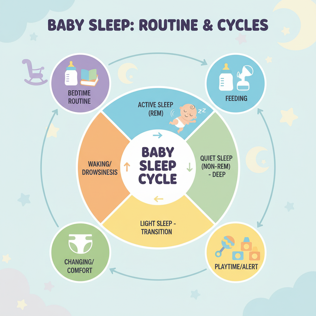 In the very early weeks, your newborn’s sleep is largely dictated by hunger and comfort. Their sleep cycles are short, and they often mix up day and night. During this stage, focus on: