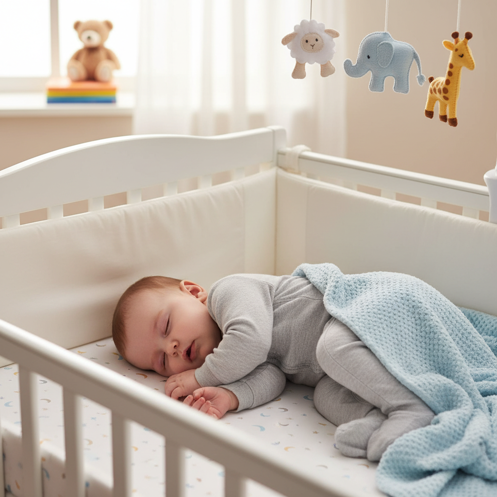 • Safe Sleep Space Always ensure your baby’s crib or bassinet meets safe sleep guidelines- firm mattress, fitted sheet, no loose blankets, bumpers, or toys.