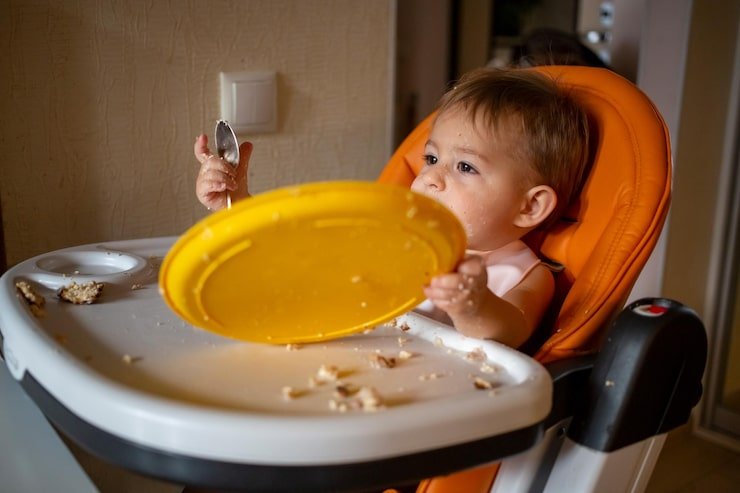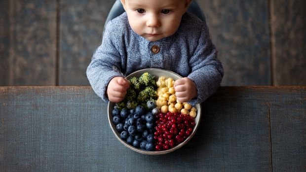 Let your baby explore food with their hands — it’s how they learn! Use soft finger foods like avocado, banana, or cooked sweet potato to promote independence and coordination.