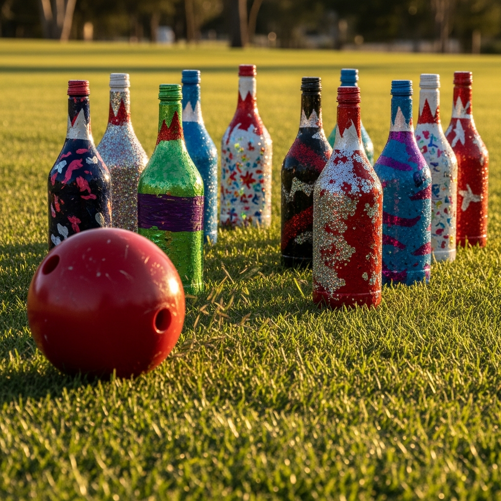 You can easily recreate the bowling alley experience outdoors using common household items. Set up ten empty plastic bottles weighted with a little water or sand at the end of a flat section of the lawn. Use a medium-sized rubber ball to knock them down. This game improves hand-eye coordination and can be adjusted in difficulty by changing the distance to the pins.