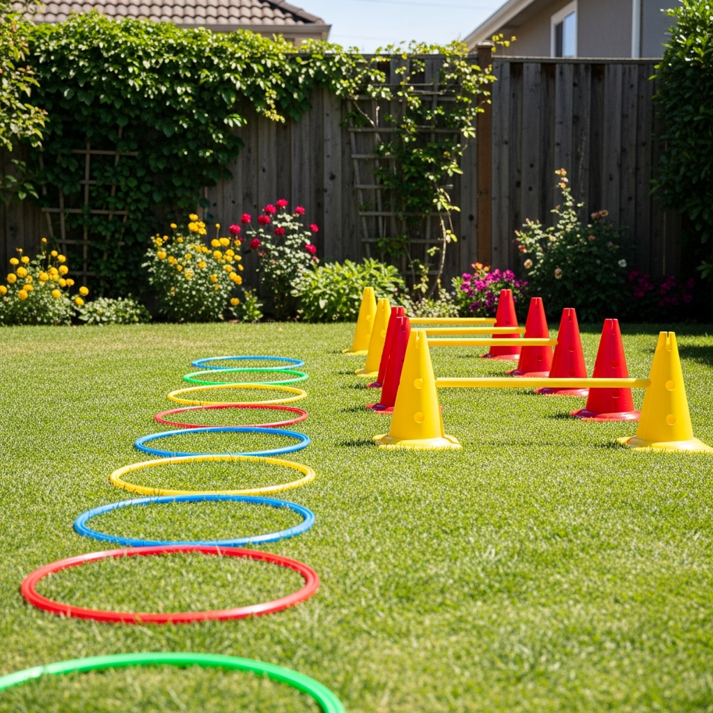 Building an obstacle course is an excellent way to use various backyard items like hula hoops, pool noodles, and cones. Challenge children to crawl under string lines, hop through hoops, and balance on wooden planks. This activity is highly versatile, allowing you to change the layout frequently to keep the challenge interesting and age-appropriate.