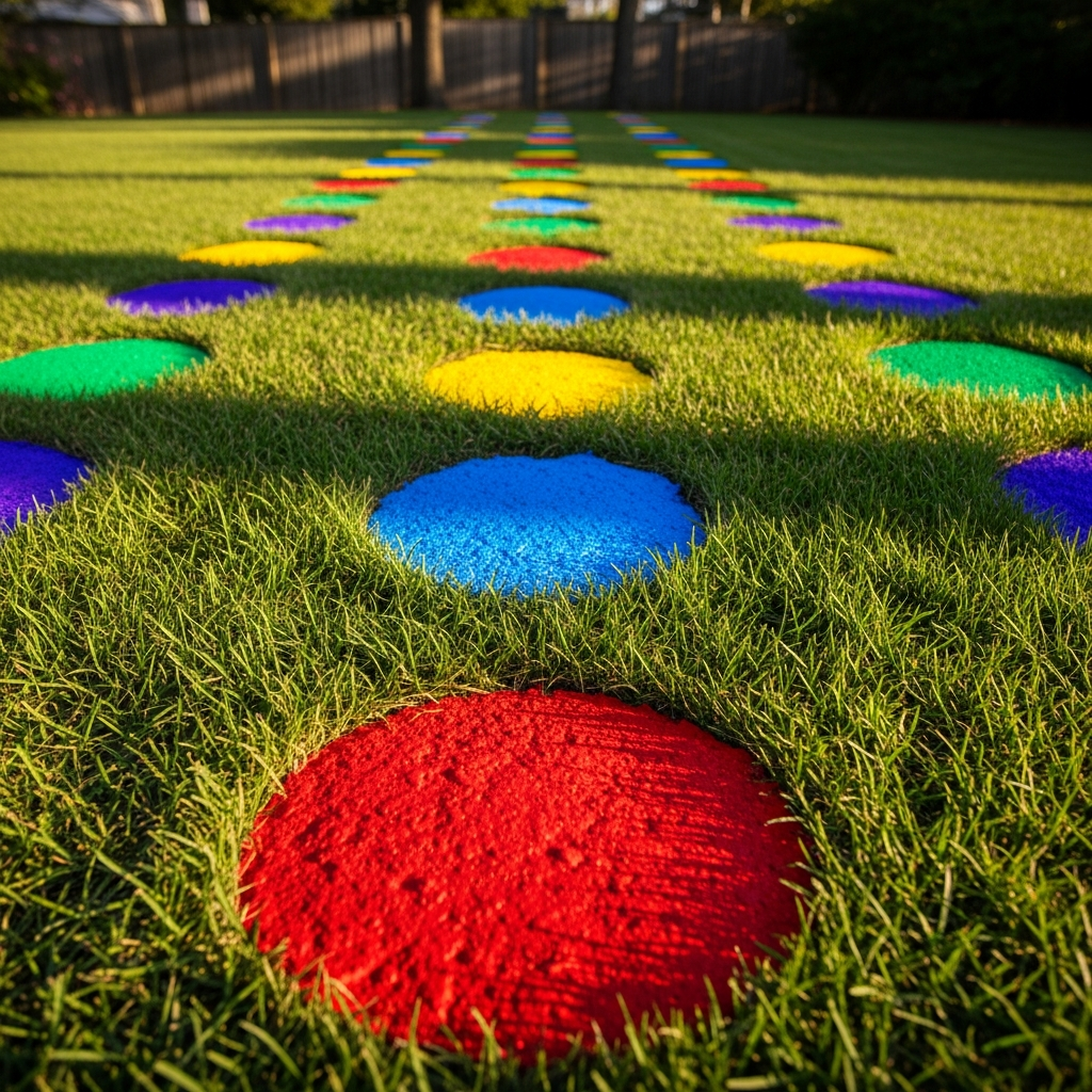 You can create a temporary Twister board directly on your lawn using grass-safe spray paint in red, yellow, blue, and green. Use the traditional spinner or call out commands to have children place their hands and feet on the colored circles. This game tests flexibility and balance and provides plenty of laughter as players get tangled up.