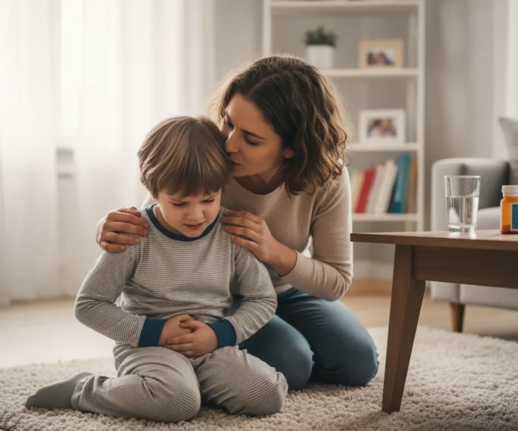 • Persistent abdominal pain: If your child is holding their stomach, experiencing pain that is getting worse, moving to the lower right side, or is accompanied by fever, vomiting, or loss of appetite. This could indicate appendicitis or other abdominal emergencies.