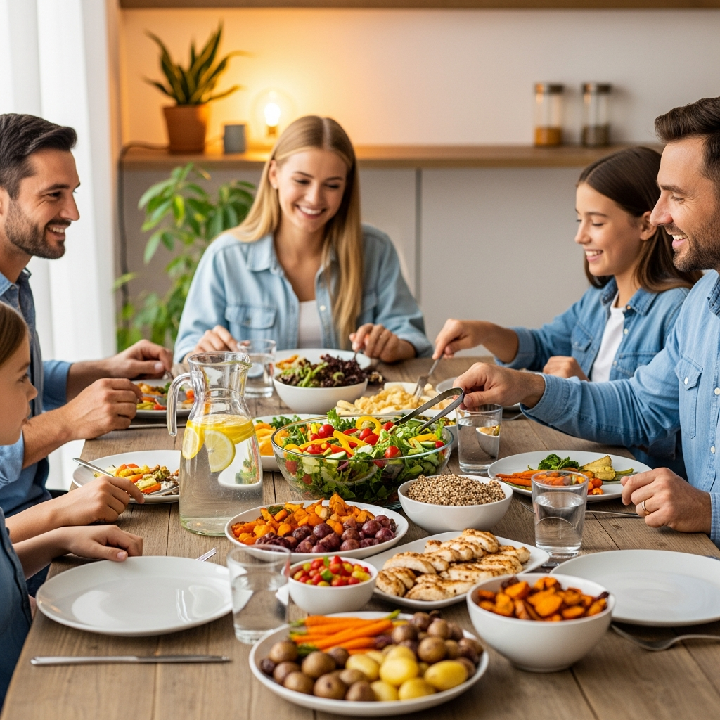 Family mealtimes provide an opportunity for parents to model healthy eating behaviors. When families eat together, children are more likely to consume vegetables and less likely to eat unhealthy snacks. This environment also allows parents to monitor portion sizes and engage in positive conversations, which reduces the likelihood of emotional eating or distractions during meals.