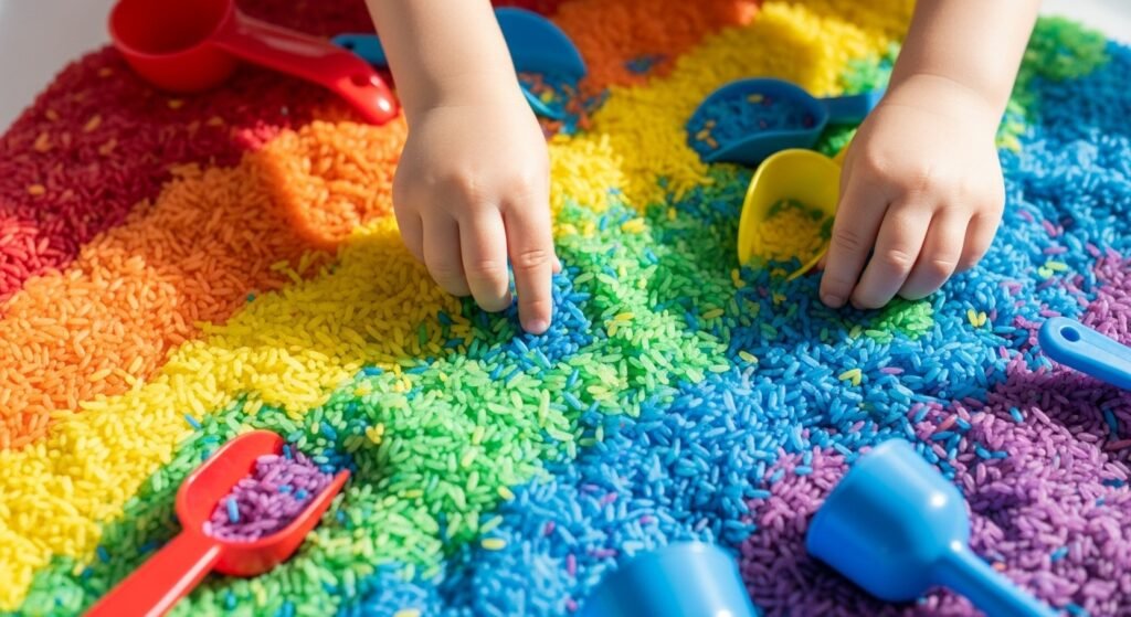 Rainbow Rice Sensory Bin