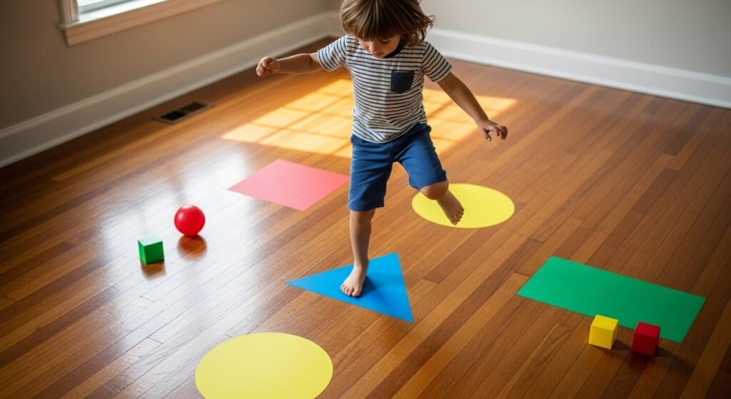 Use colorful tape to create shapes, lines, and paths on the floor.