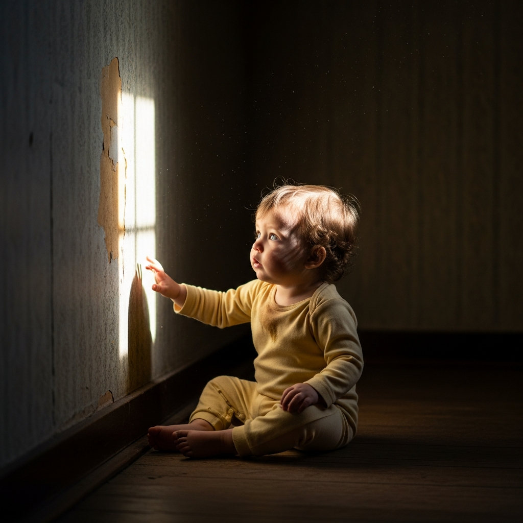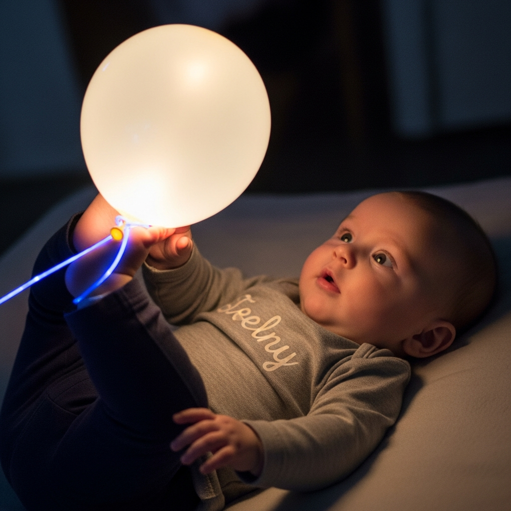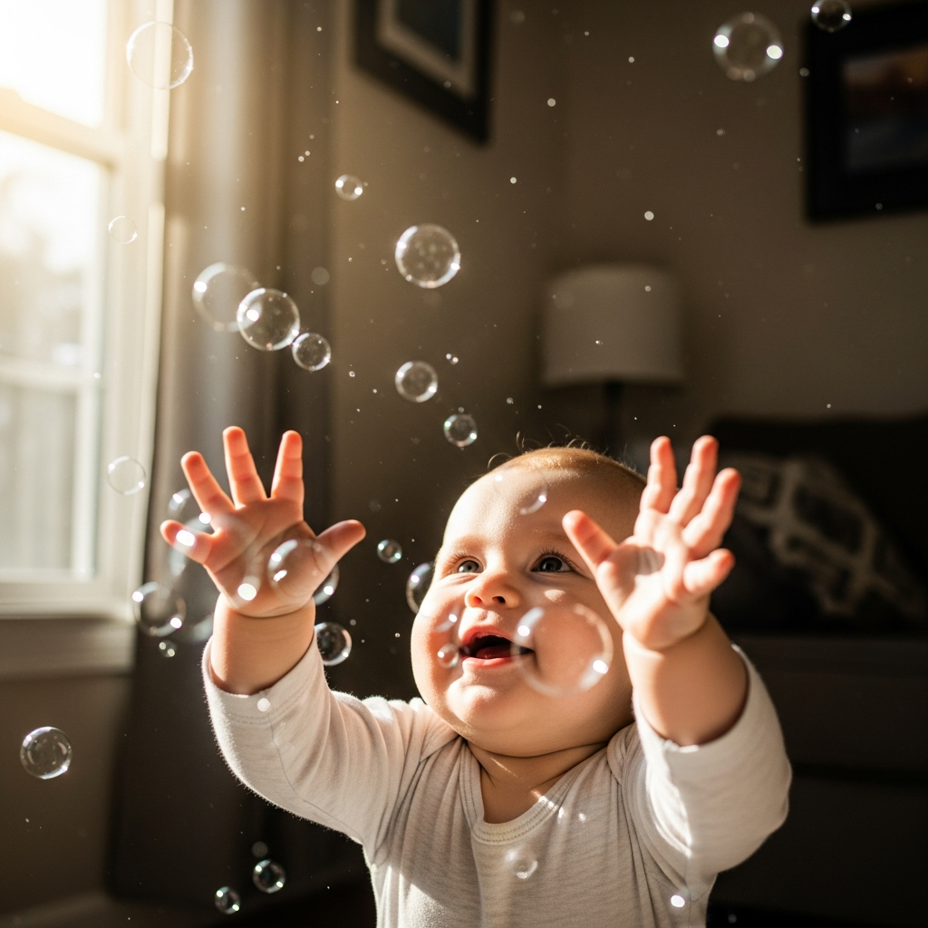In a slightly dimmed room, move a flashlight beam slowly across the wall. This encourages your baby to practice visual tracking and focus on a moving light source.