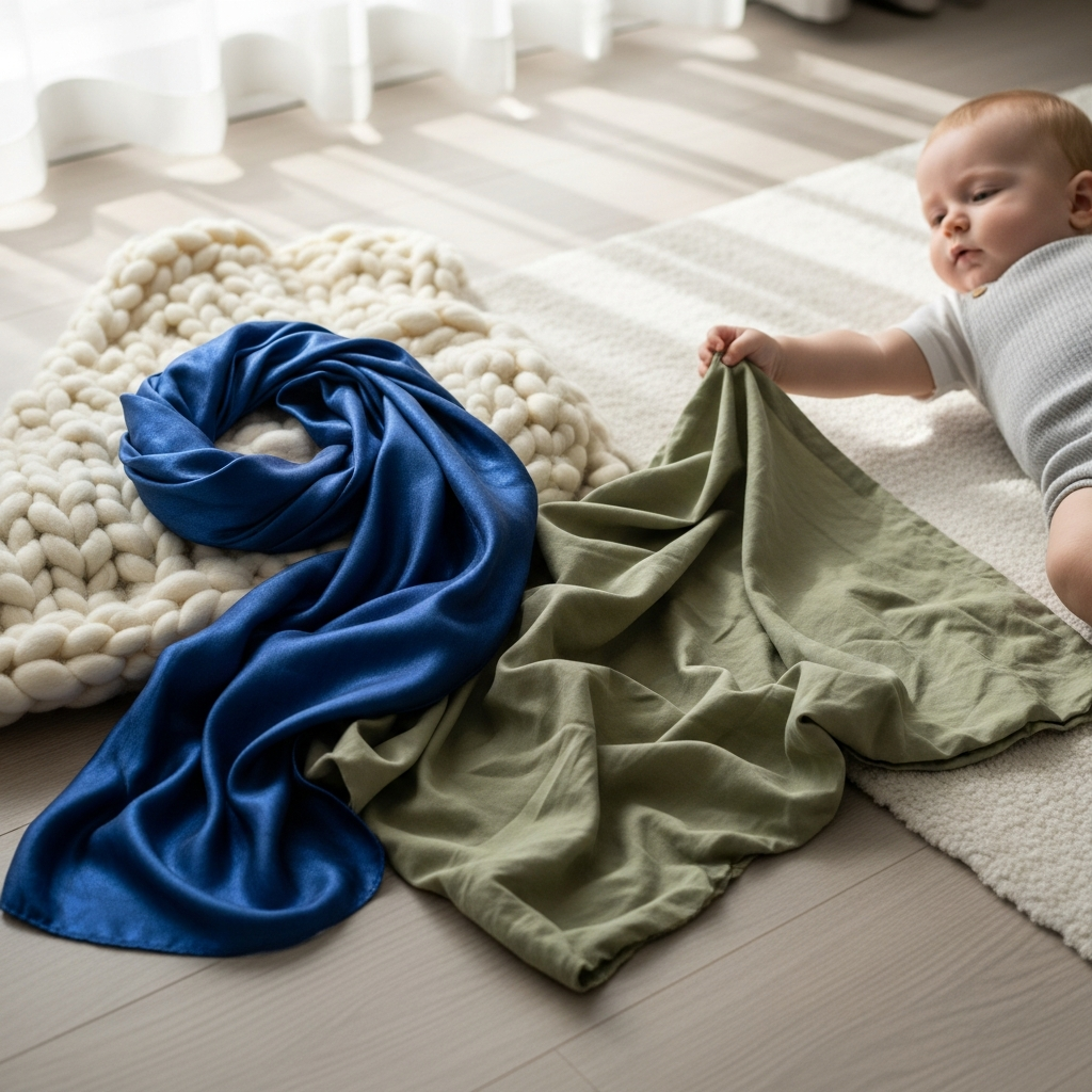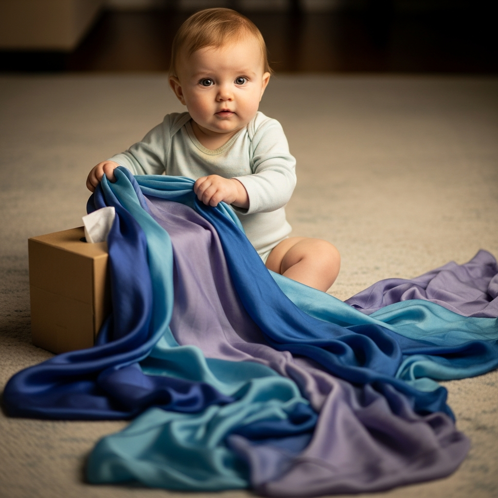 Stuff several lightweight scarves into an empty tissue box. Let your baby pull them out one by one, which provides a satisfying tactile and visual reward.