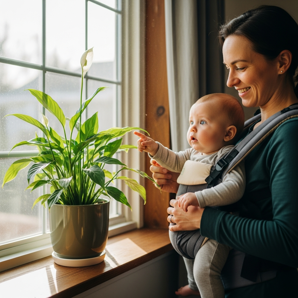 Carry your baby around the house to look at indoor plants or out of various windows. Describe what you see to help build their vocabulary and interest in the world.
