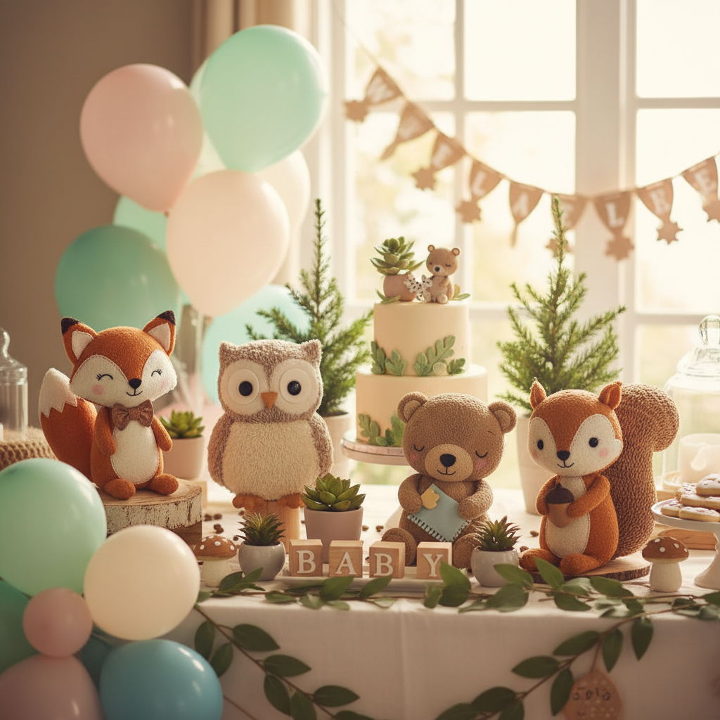 Bring the magic of the forest indoors with a woodland theme. Incorporate elements like foxes, bears, deer, and owls. Use natural textures, wood slices, moss, and earthy tones. It’s cozy, charming, and utterly adorable.