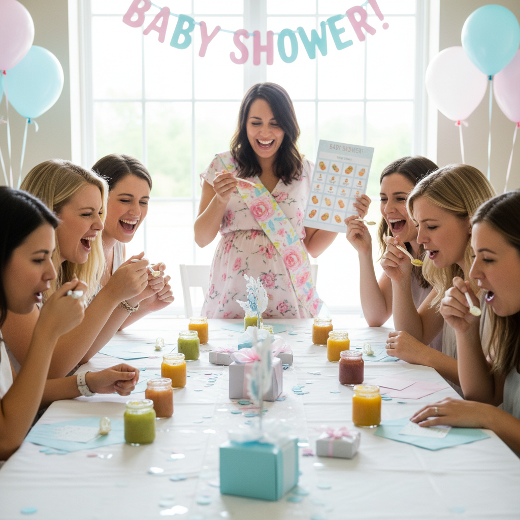 • Guess the Baby Food Blindfold guests and have them taste different jars of baby food, guessing the flavor. It’s always a laugh!