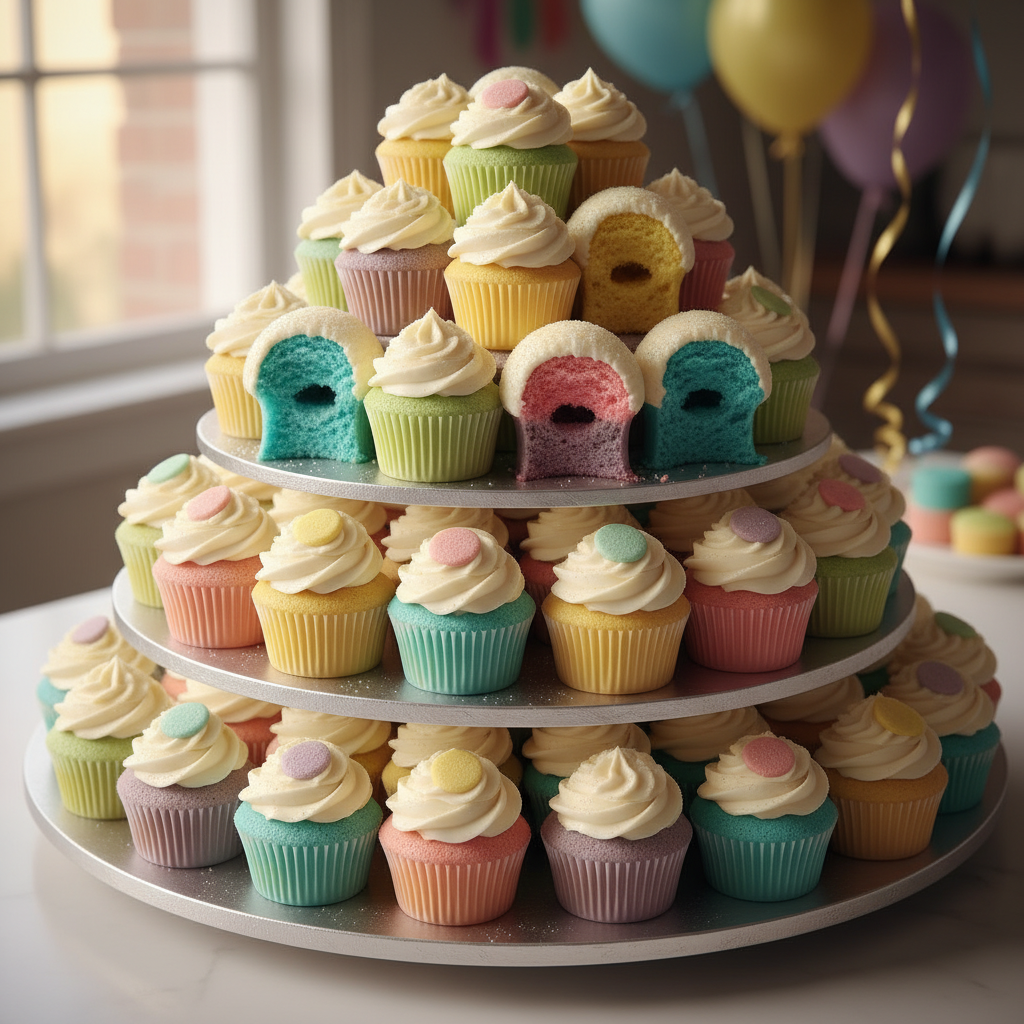 Instead of one large cake, arrange individual cupcakes to form a larger shape. Each cupcake can have a colored center, and guests pull them apart to reveal the gender as a collective surprise.
