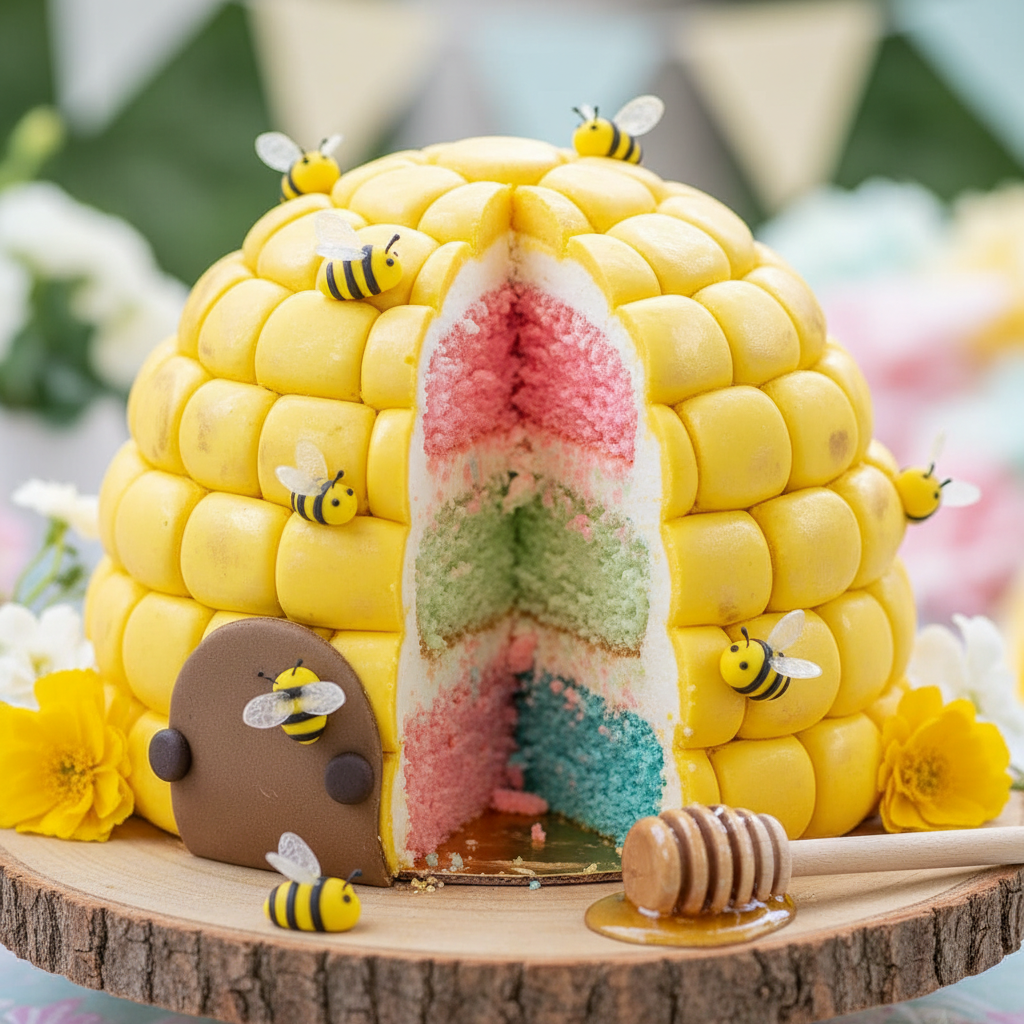 This sweet theme uses bees, honeycombs, and yellow accents. When sliced, the cake reveals a buzz-worthy pink or blue interior, a truly delightful surprise.