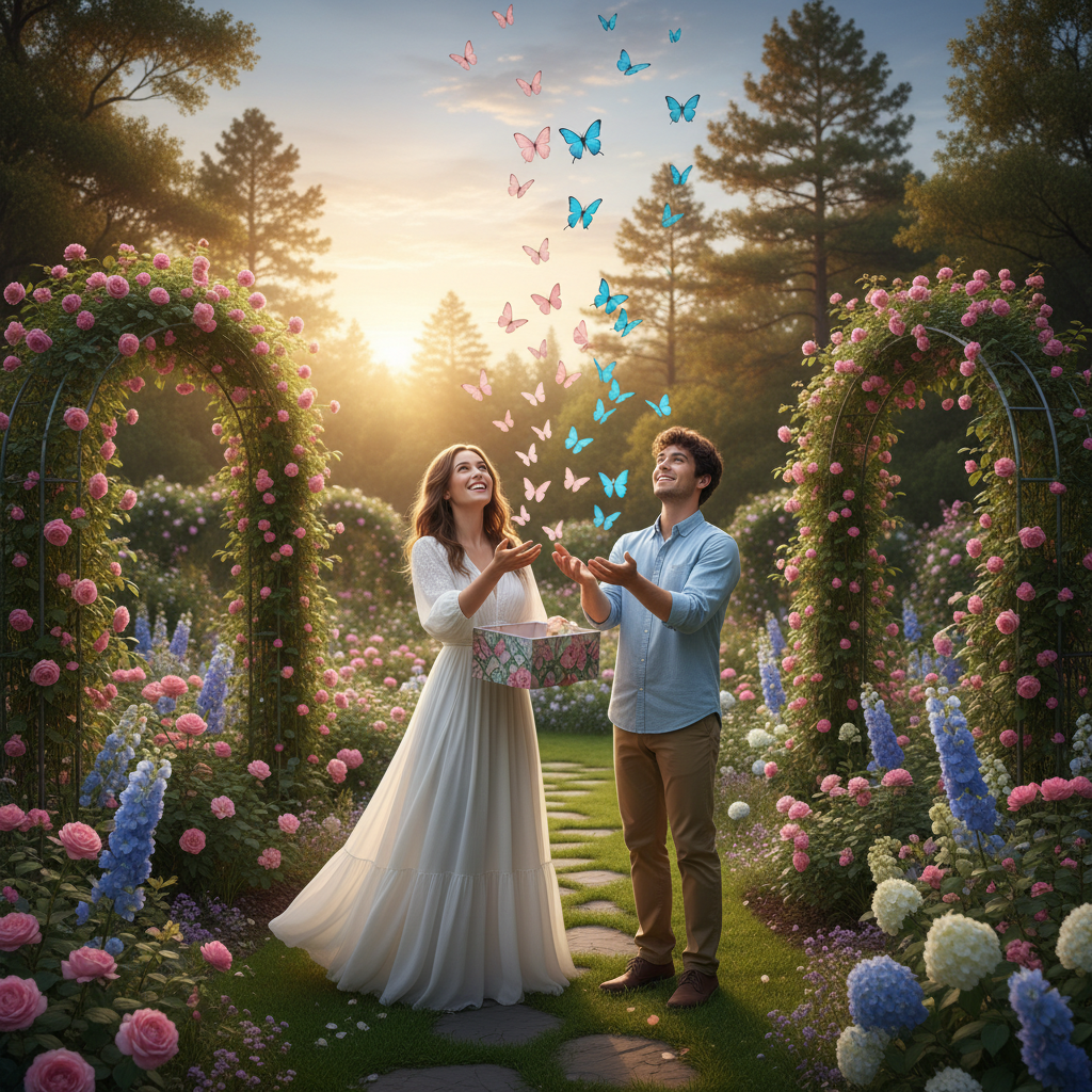 Order live butterflies in gender-specific colors (e.g., painted ladies for girls, or blue morphos for boys, if available and ethical). Release them from a box for a truly magical moment.