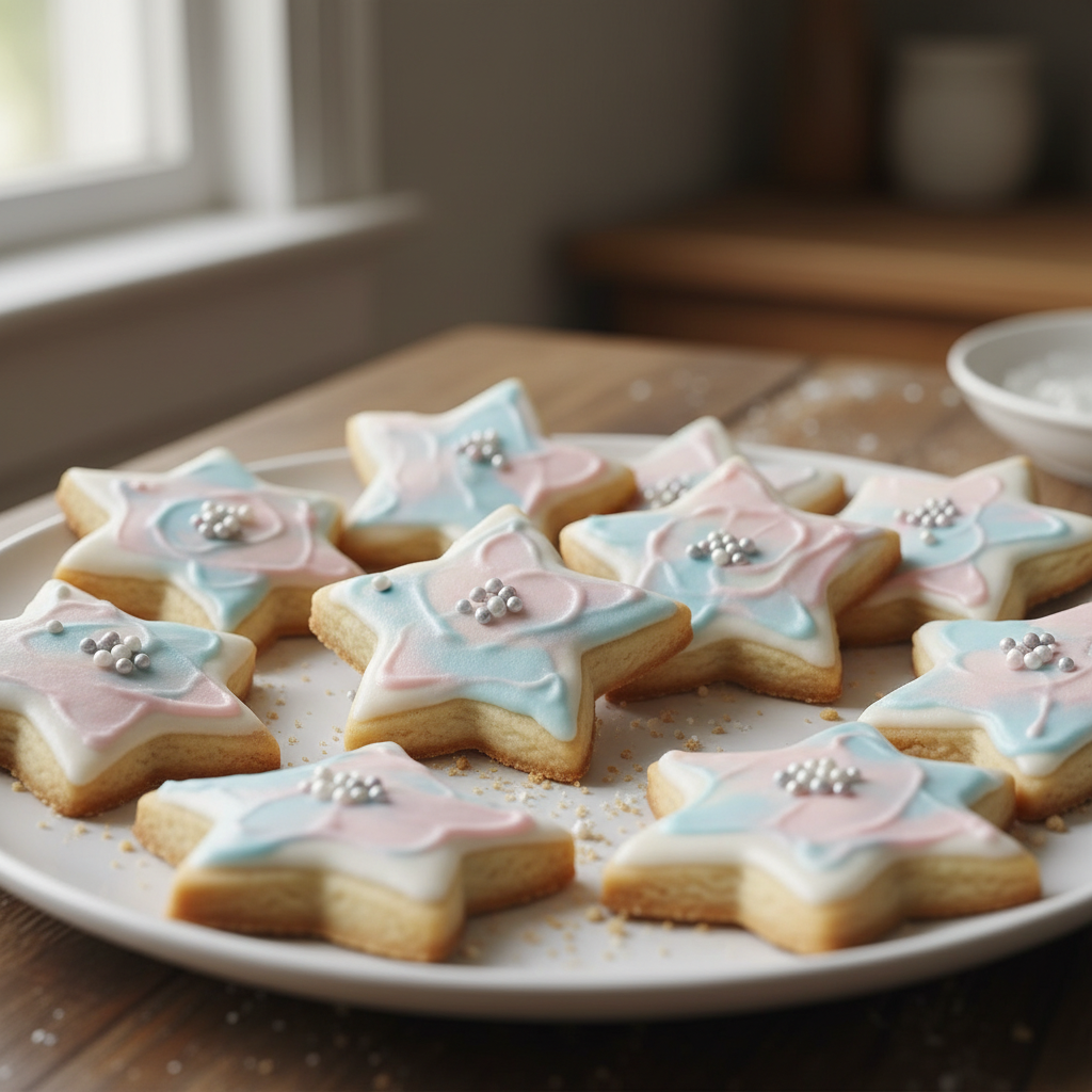 This theme is sweet, dreamy, and incredibly versatile. Use colors like navy, gold, silver, and white. Decorations can include star-shaped balloons, fairy lights, and glitter. For the reveal, consider a cake with a starry night design that reveals pink or blue inside, or a box releasing star-shaped confetti.