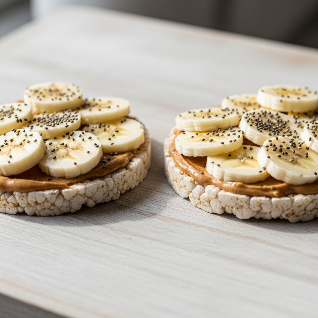 Rice cakes are a light, crunchy base for various toppings. Spreading almond butter and adding a few thin banana slices creates a balanced snack that is both sweet and salty. It is a gluten-free option for sensitive stomachs.