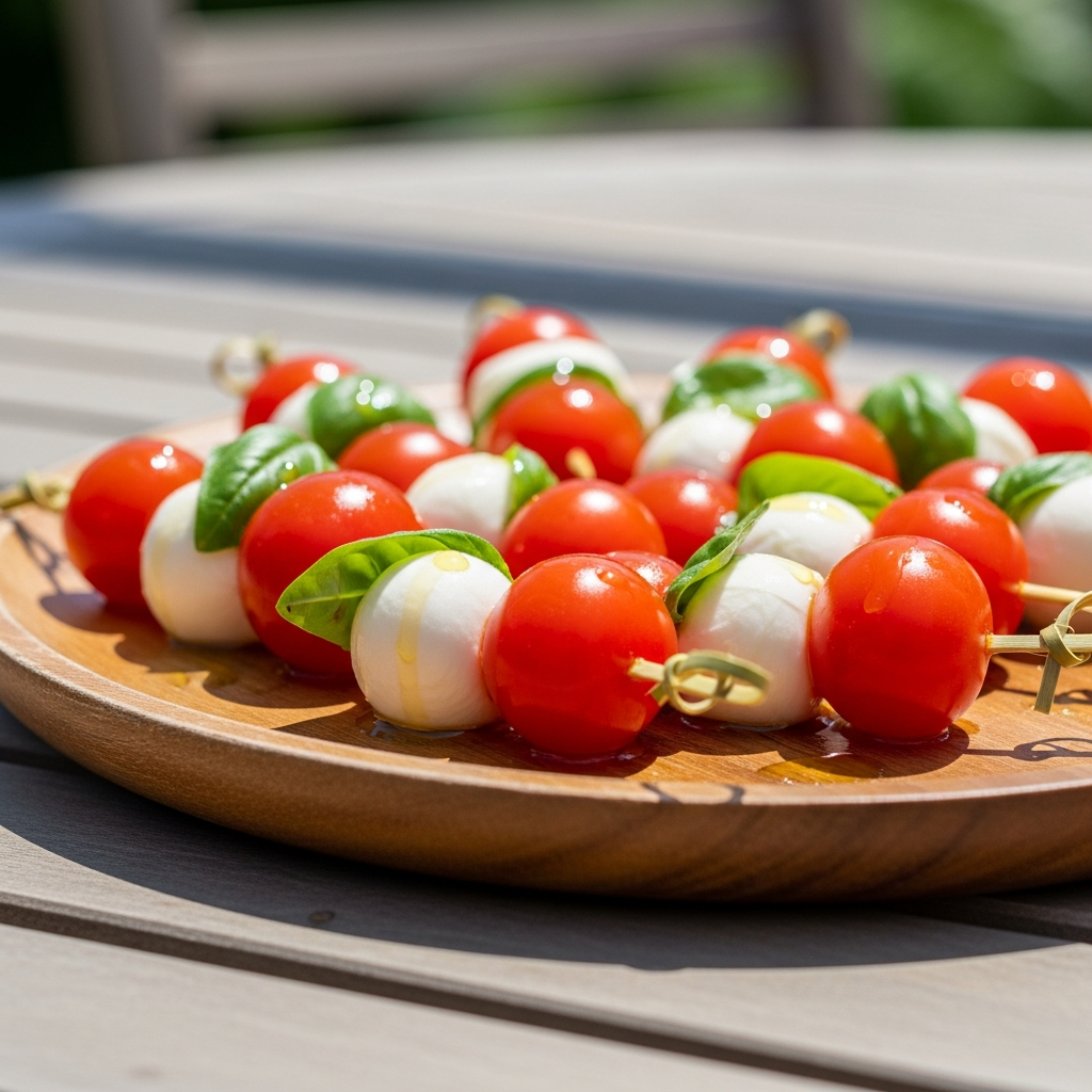 Thread cherry tomatoes and small mozzarella pearls onto toothpicks. These mini skewers are visually appealing and provide a fresh combination of protein and lycopene. A drizzle of balsamic glaze is optional but delicious.