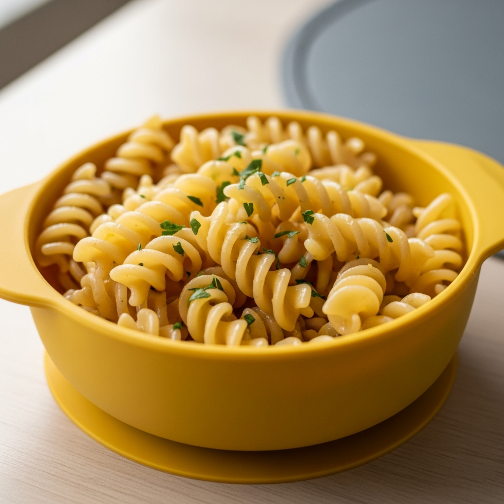 Chickpea pasta is high in protein and fiber. Using spiral or fusilli shapes without sauce provides a dry yet nutritious meal. The texture is easy for toddlers to grip, and since there is no tomato sauce involved, the cleanup is minimal.