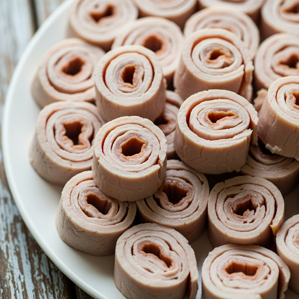 Low-sodium deli turkey is a lean protein that can be rolled up and sliced into small rounds. These rolls stay together well and do not require sauces or dips, keeping the eating area dry and clean.