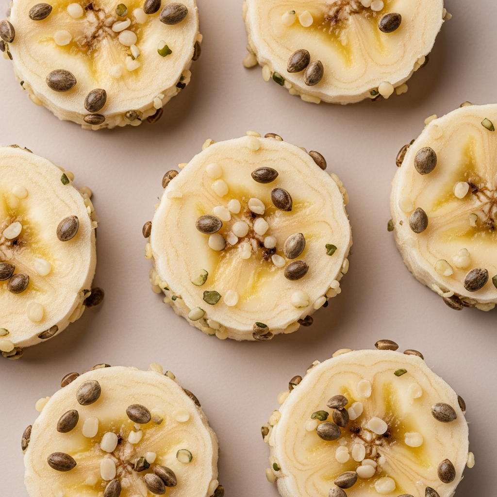 Bananas are often messy, but slicing them into coins and coating them lightly with hemp seeds provides a better grip and added protein. The seeds prevent the banana from sticking to fingers, making it a much cleaner fruit option for snack time.