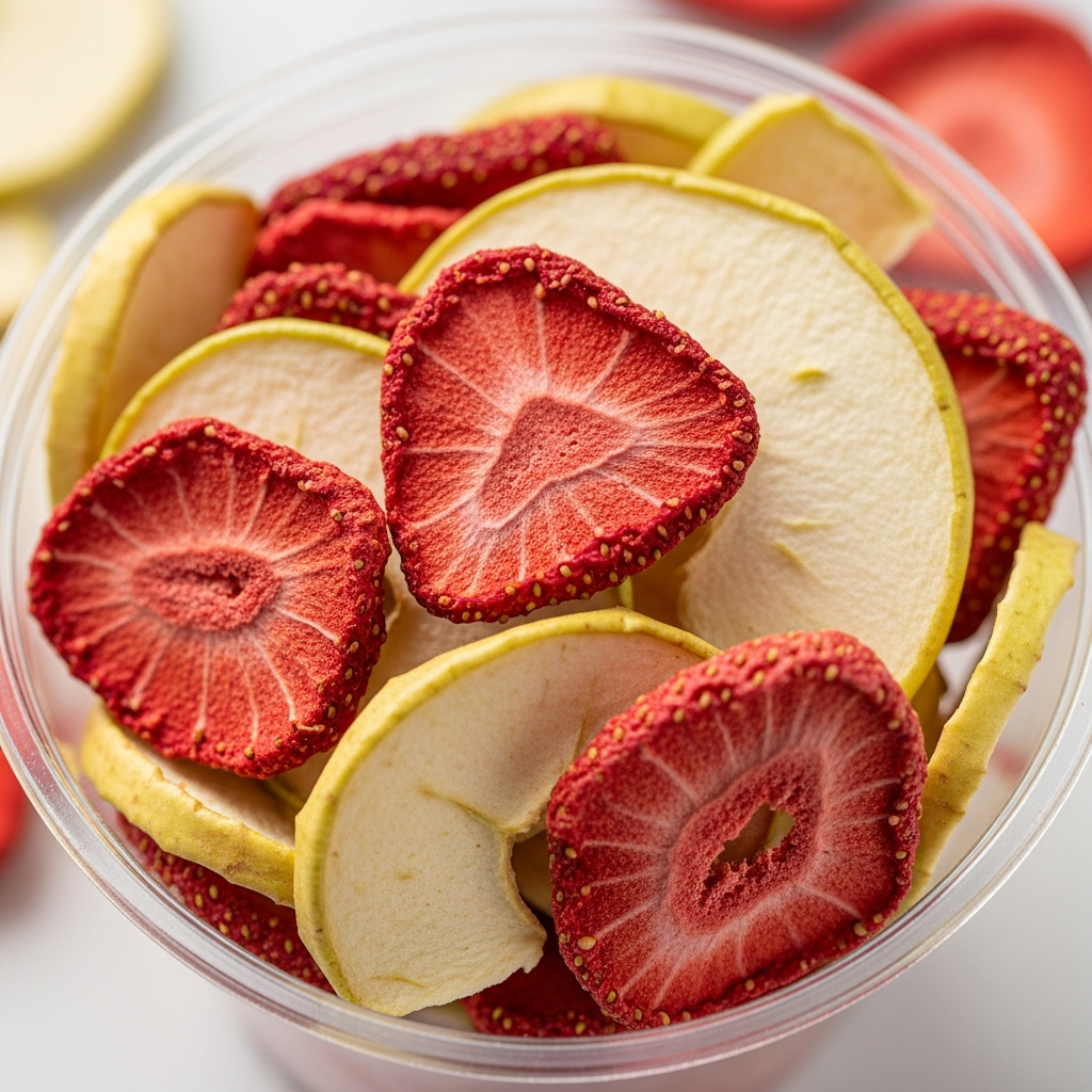 Freeze-dried fruits like strawberries, apples, and blueberries offer the nutritional benefits of fruit without the juice and stickiness. They have a satisfying crunch and dissolve easily in the mouth, making them a safe and tidy snack for on-the-go.