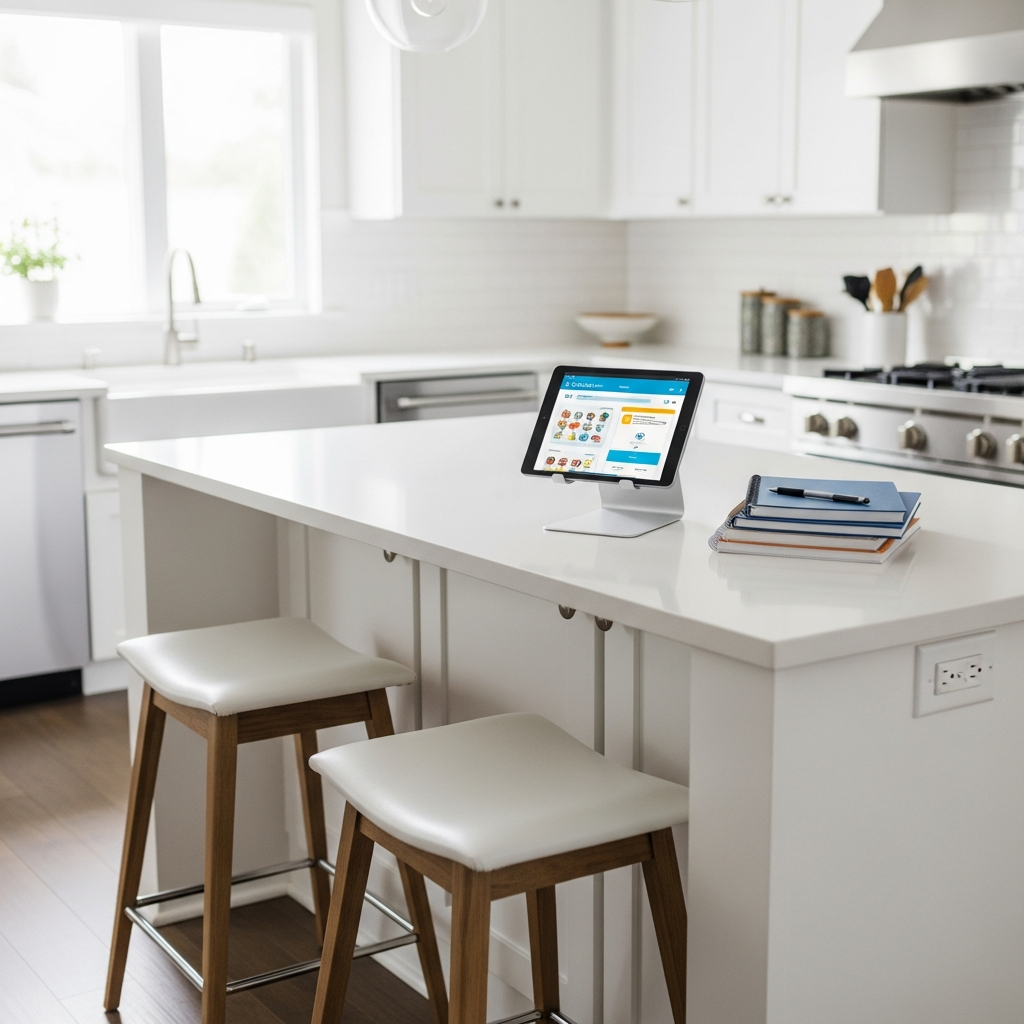 For younger children who need more parental guidance, a dedicated end of the kitchen island can serve as a temporary homework station. Adding comfortable bar stools and a nearby charging station for tablets ensures they stay focused while dinner is being prepared.