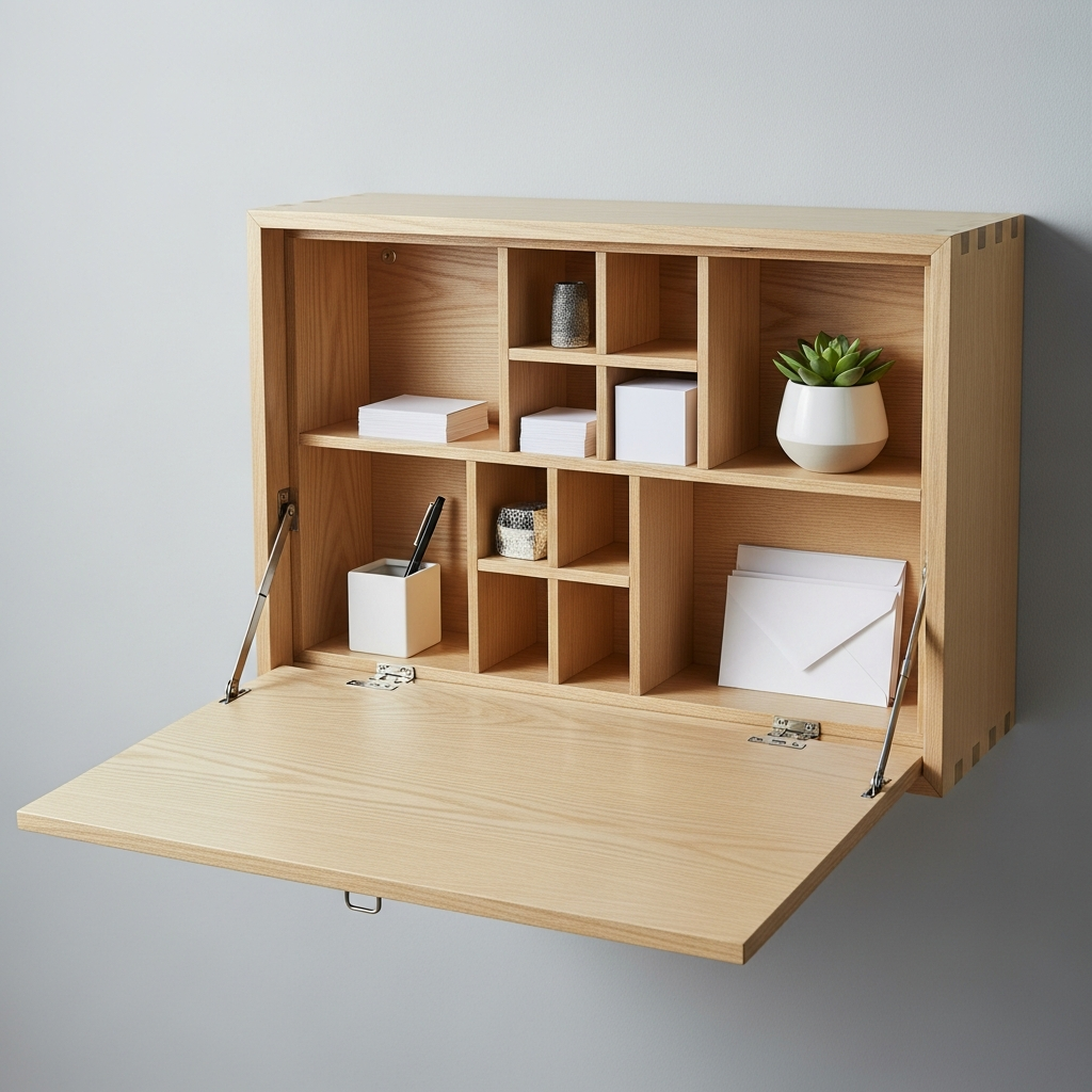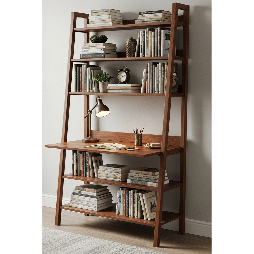 Ladder desks offer a vertical storage solution with a small footprint. The leaning design provides several shelves for books and decor above the main writing surface, making it perfect for bedrooms where wall space is at a premium.