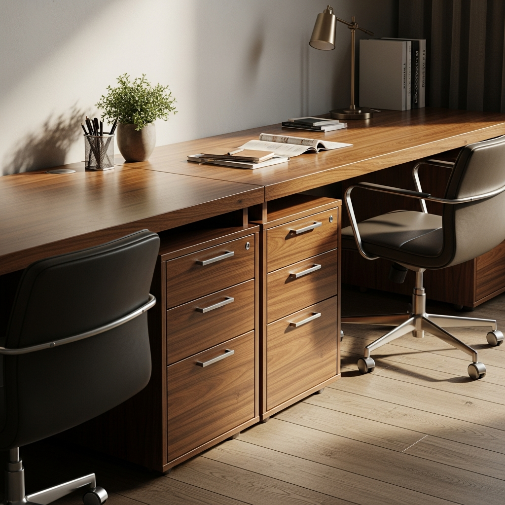 If you have two children sharing a space, a long double-sided desk with a central divider or drawer unit provides individual workspaces while maintaining a cohesive look. This encourages parallel work and makes it easier for parents to supervise multiple children at once.
