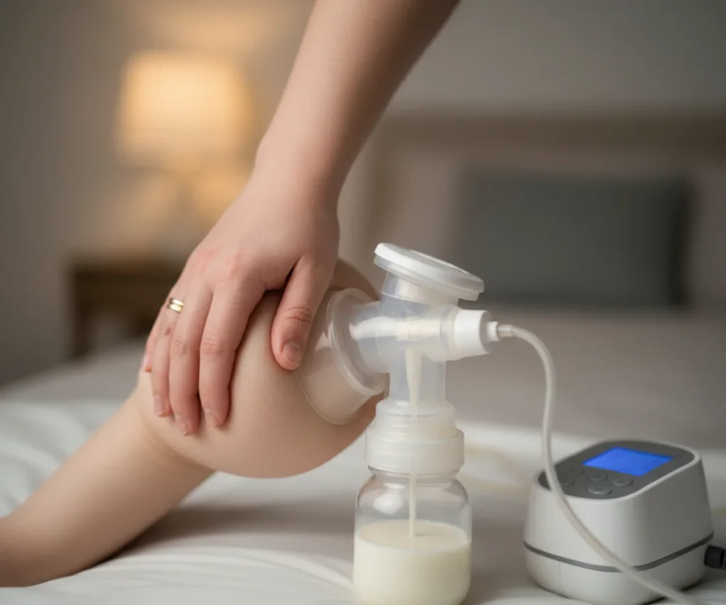 • During Pumping: Use your hands to massage your breasts while pumping. Start from the chest wall and move towards the nipple. This can help empty your breasts more thoroughly and release more fat. Some parents find it helpful to compress the breast for a few seconds when the milk flow slows, then release and repeat.