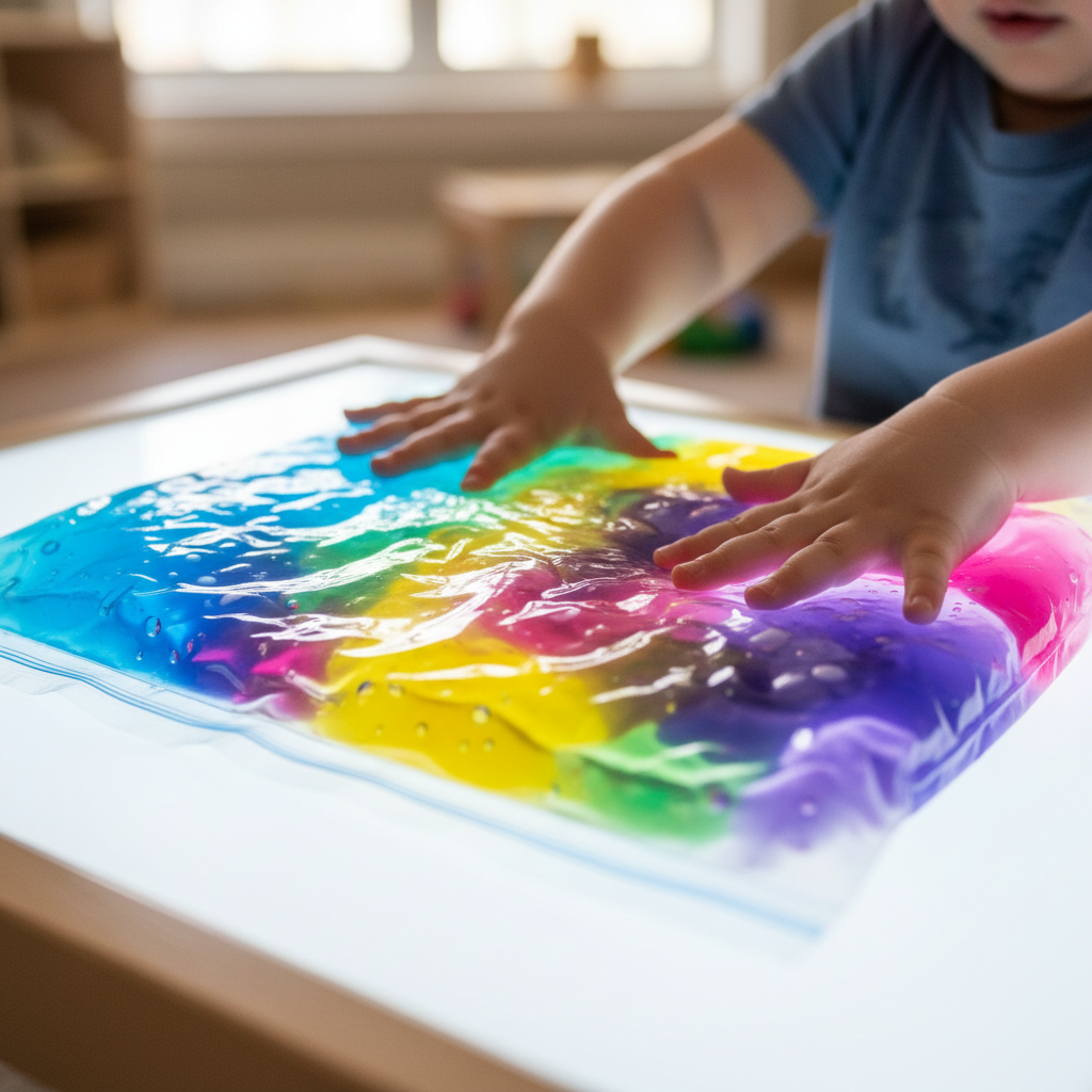 These are fantastic for tactile exploration without anything escaping. Use sturdy, clear freezer bags for best results.