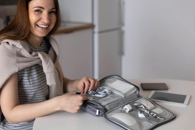 I packed my phone, a charger with a long cable, and headphones — perfect for music, updates, and those first photos with baby.