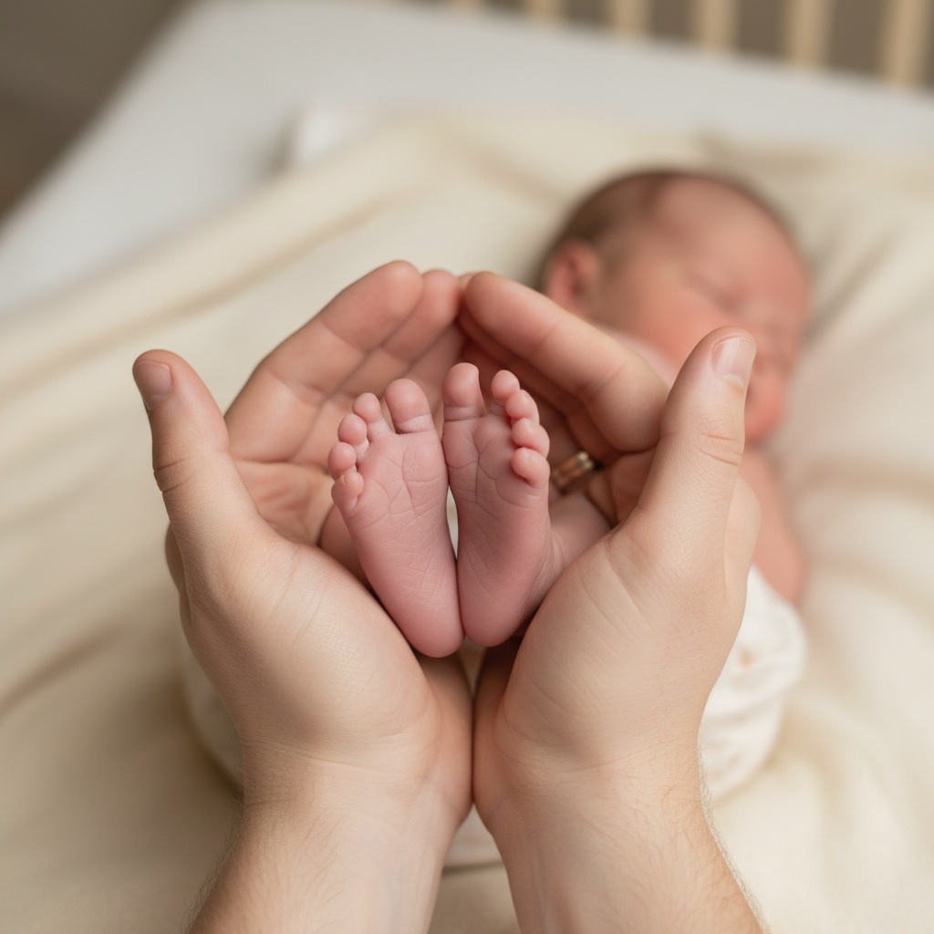 Zoom in on the details that change so quickly. Capture your baby’s tiny hand gently grasping a parent’s finger. Or, gently cup your baby’s feet in your hands. These close-up shots emphasize their smallness and fragility.