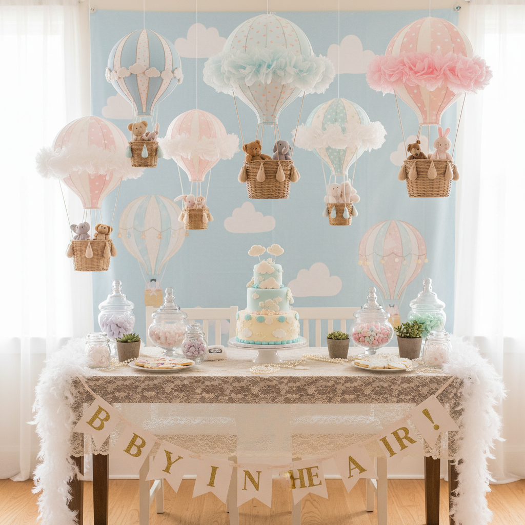 This theme cleverly acknowledges the traditional phrases but pivots to celebrate “baby” instead. Use a mix of colors like mint green, lavender, soft yellow, and peach for a lively yet understated feel. Decorations can feature playful typography and a blend of classic baby motifs without being overtly gendered, creating a joyous and inclusive atmosphere.