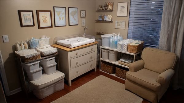 - Under-crib storage bins for extra diapers or out-of-season clothes.