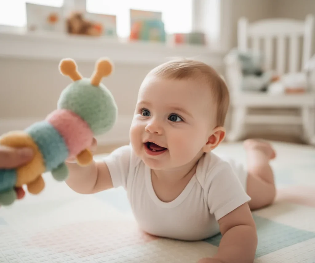 - Reaching and Grasping:Â They might start batting at toys or attempting to grasp things within reach.