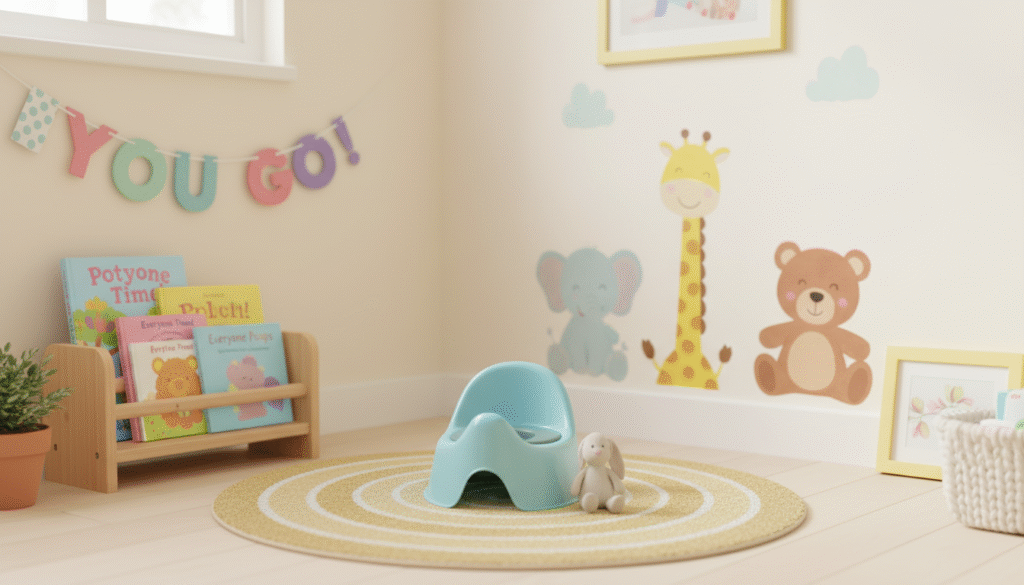 A welcoming potty area encourages kids to try without fear.