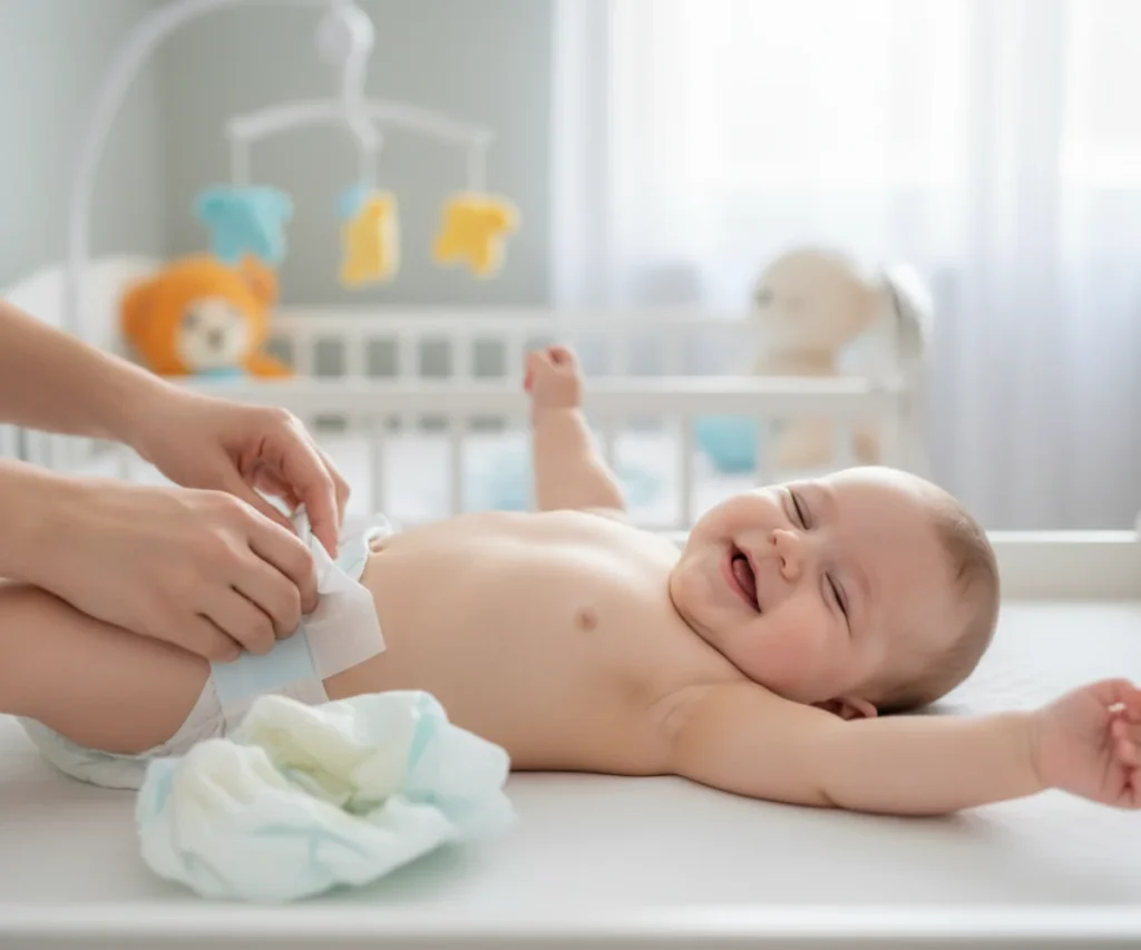 Practical Tip: Check your baby’s diaper frequently, especially after feeds or naps. Modern diapers have wetness indicators that change color, making it easier to tell if a change is needed without having to open the diaper completely.