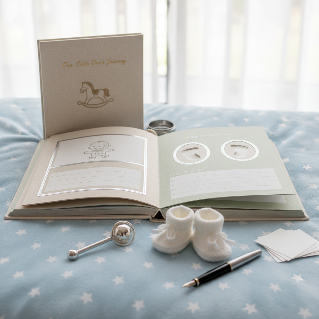 A beautifully designed baby memory book provides prompts and spaces for parents to record all of baby’s firsts- first smile, first step, first word. It’s a wonderful way to document their journey and create a tangible keepsake for future reflection.