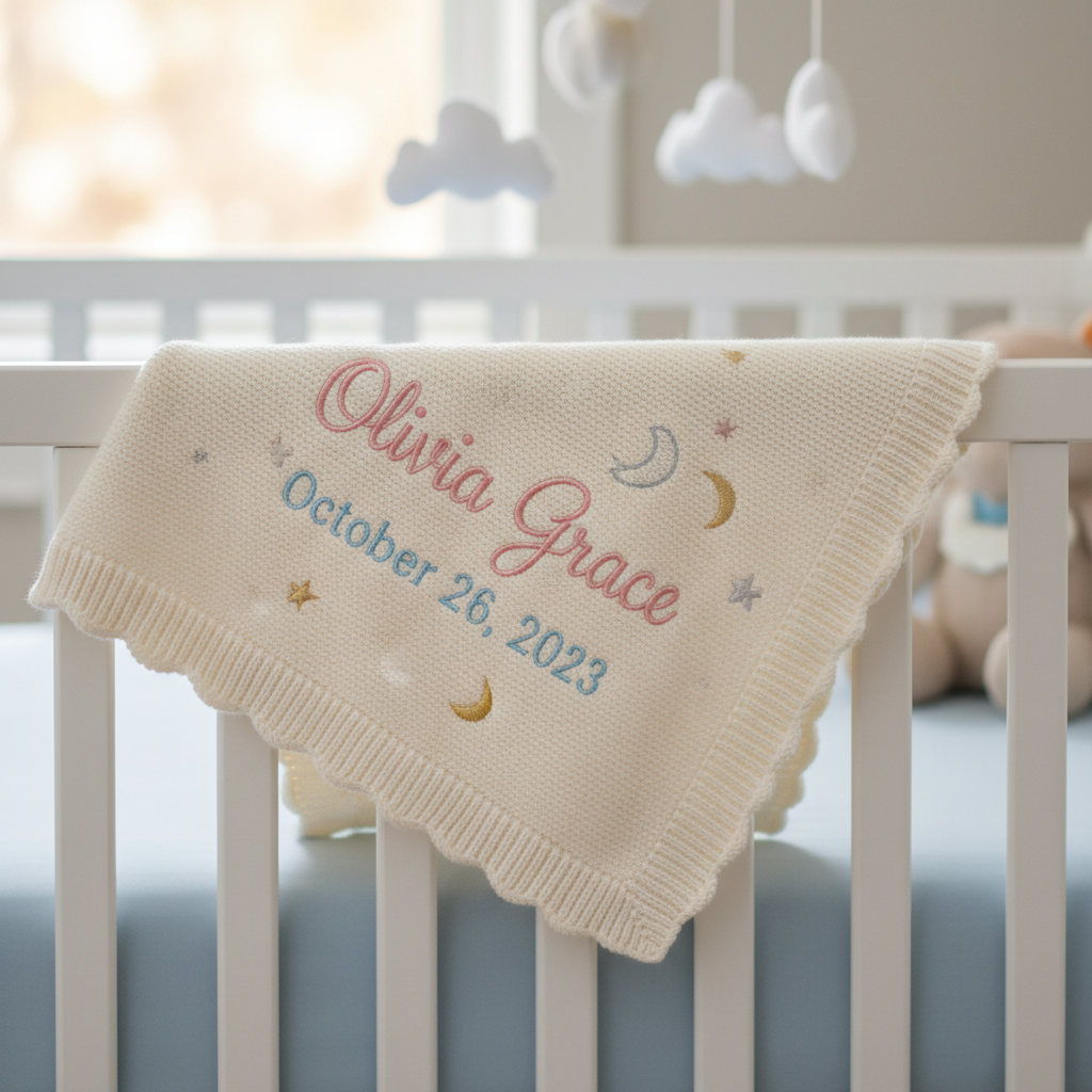 A soft, high-quality blanket or quilt, custom-embroidered with the baby’s full name, birthdate, or even a sweet nursery rhyme, becomes an instant heirloom. It’s perfect for snuggles, tummy time, and will eventually serve as a cherished decorative piece in their room. Choose organic cotton or bamboo for extra softness against delicate skin.