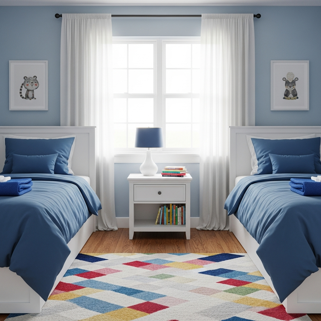 For larger rooms, a mirrored layout provides a sense of fairness and balance. By placing two identical beds on opposite sides of the room with matching nightstands and lamps, you create a visual boundary that gives each child their own distinct territory. This approach works particularly well for children who prefer their own independent space but enjoy the comfort of a shared room.