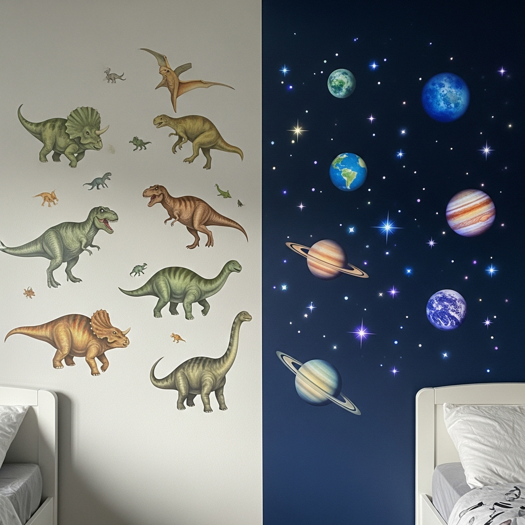 Allowing each child to decorate the wall space next to their bed helps them feel a sense of identity. Whether it is their name in wooden letters, a specific theme like outer space or nature, or a gallery of their own artwork, these personal touches define their individual area within the shared room without requiring major renovations.