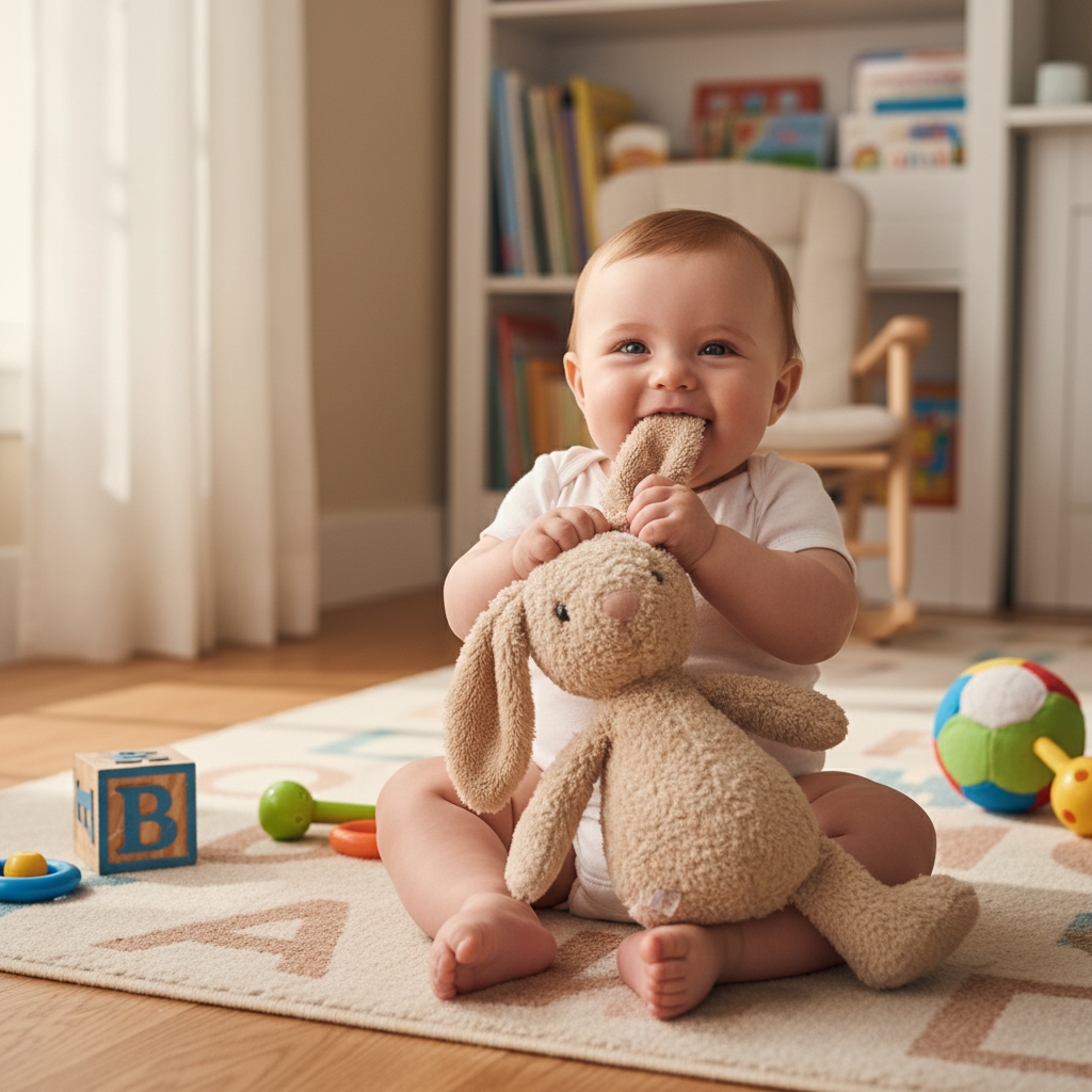 Place your baby with their favorite stuffed animal or toy. Capture them interacting with it, hugging it, or just looking at it curiously. This also gives a sense of scale to how much they’ve grown!
