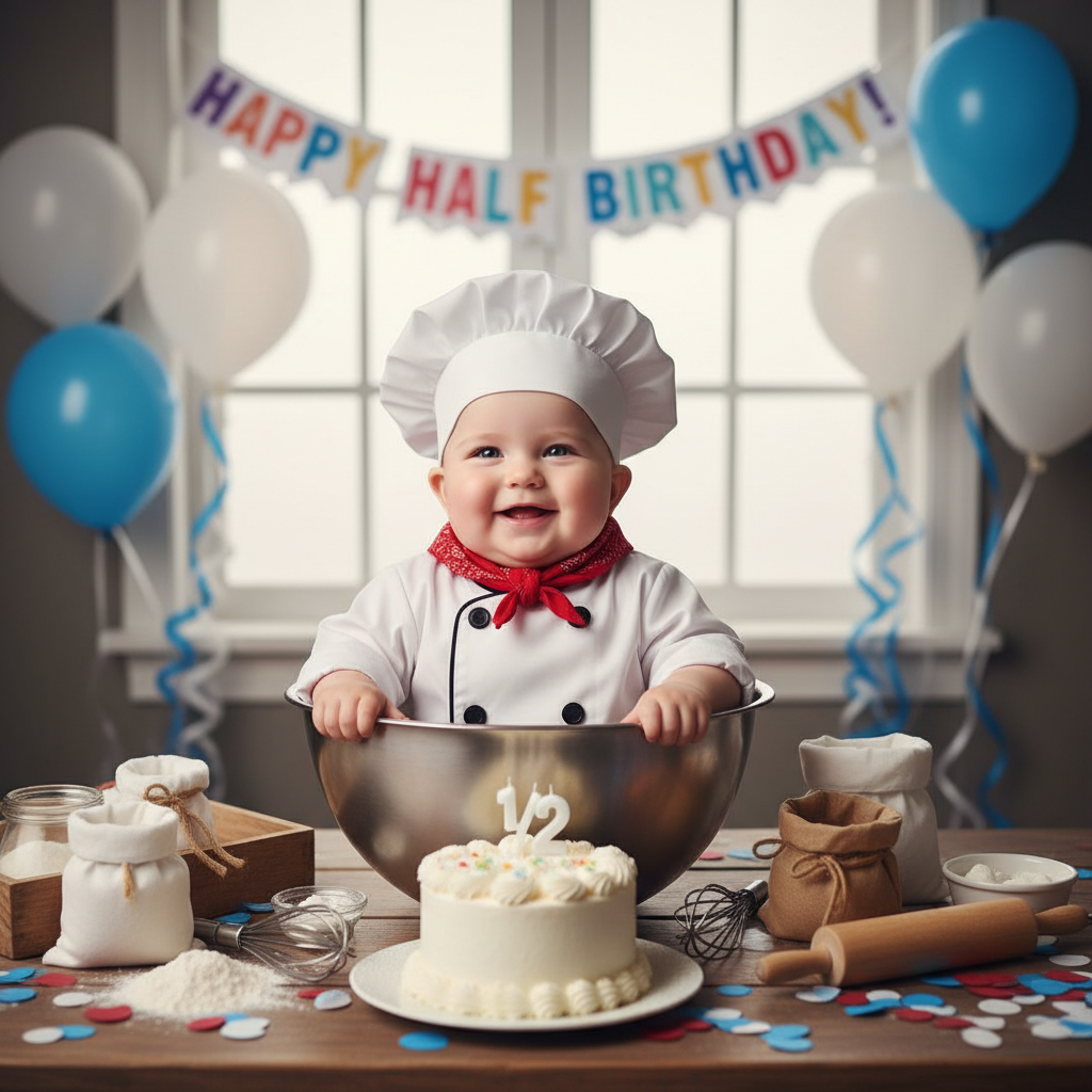 • ‘Half Birthday’ Celebration– A small cake or cupcake (for decoration, not eating!), a tiny party hat, or a ‘6’ balloon can celebrate their half-year milestone.